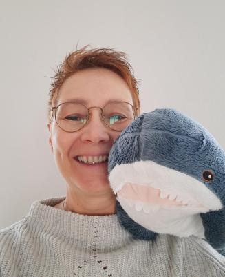 Unser Maskottchen Hanni Hai ist für die Jüngsten da. Sie passt auf, tröstet und spricht Mut zu, dabei ist Geduld ihre größte Stärke.